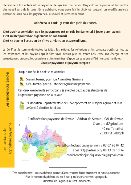 01.02.2026 - Bienvenue à la Confédération paysanne, le syndicat qui défend l'agriculture paysanne et l'ensemble des travailleurs de la terre. En y adhérant, vous avez fait le choix de soutenir un modèle agricole porteur de sens pour les paysan•nes, la société et l'environnement.