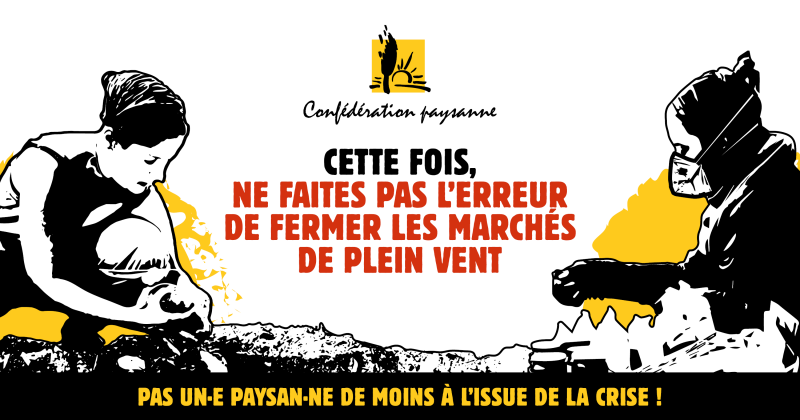 Lors du premier confinement, la Confédération paysanne a contribué à l'application des mesures barrières sur les marchés et elle a bataillé pour obtenir leur réouverture. Les paysan.nes et commerçant.es ont su montrer leur réactivité et leur rigueur dans l'application des règles sanitaires les ...
